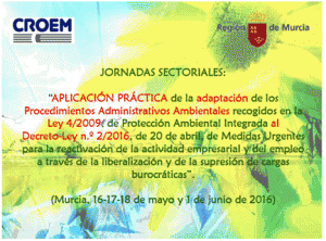Jornada “APLICACIÓN PRÁCTICA de la adaptación de los Procedimientos Administrativos Ambientales recogidos en la Ley 4/2009, de Protección Ambiental Integrada al Decreto-Ley n.º 2/2016, de 20 de abril, de Medidas Urgentes para la reactivación de la actividad empresarial y del empleo a través de la liberalización y de la supresión de cargas burocráticas”