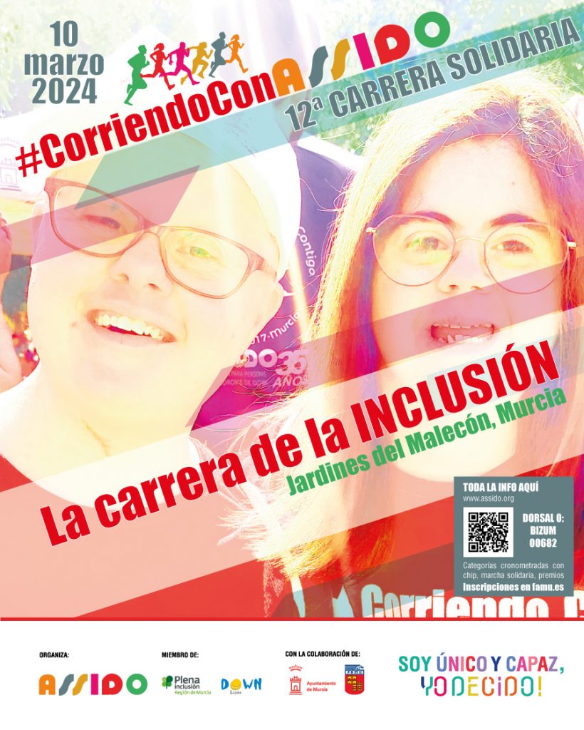 La más cercana en el tiempo es la CARRERA SOLIDARIA «CORRIENDO CON ASSIDO», que tendrá lugar el DOMINGO 10 DE MARZO en un circuito que comenzará y finalizará en los Jardines del Malecón de Murcia, con distintas categorías adaptadas a todos. En este enlace podéis consultar toda la información: https://www.assido.org/carrera-2024/