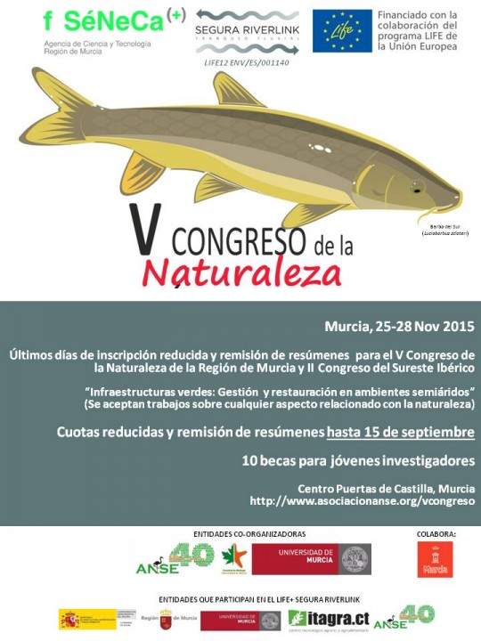 Para más info:  http://www.asociacionanse.org/iii-circular-v-congreso-de-la-naturaleza-de-la-region-de-murcia-y-ii/20150903?utm_source=twitterfeed&utm_medium=twitter&utm_campaign=Feed%3A+Anse+%28ANSE+-+Asociaci%C3%B3n+de+Naturalistas+del+Sureste%29
